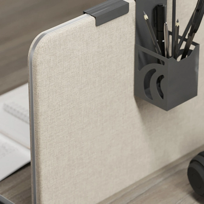 Универсальные настольные экраны созданы для дополнительной шумоизоляции, которая создаёт более комфортные условия для работы и помогает сосредоточиться на важных задачах. Особенностью наших экранов является продуманная система скрытых штыревых креплений. Благодаря им установка становится максимально простой, а конструкция — невероятно надёжной и устойчивой. Они подходят для любых столов и рабочих станций из нашего ассортимента (за исключением серии Slim System), а также прекрасно интегрируются с мебелью других производителей оперативной мебели. В нашем ассортименте вы найдёте как классические экраны из ЛДСП, так и современные варианты из ткани, которые могут быть выполнены в различных вариантах отделки: с элегантным алюминиевым кантом, в стильном сочетании с декоративным шнурком, а также в оригинальном исполнении с использованием двух разных цветов тканей.