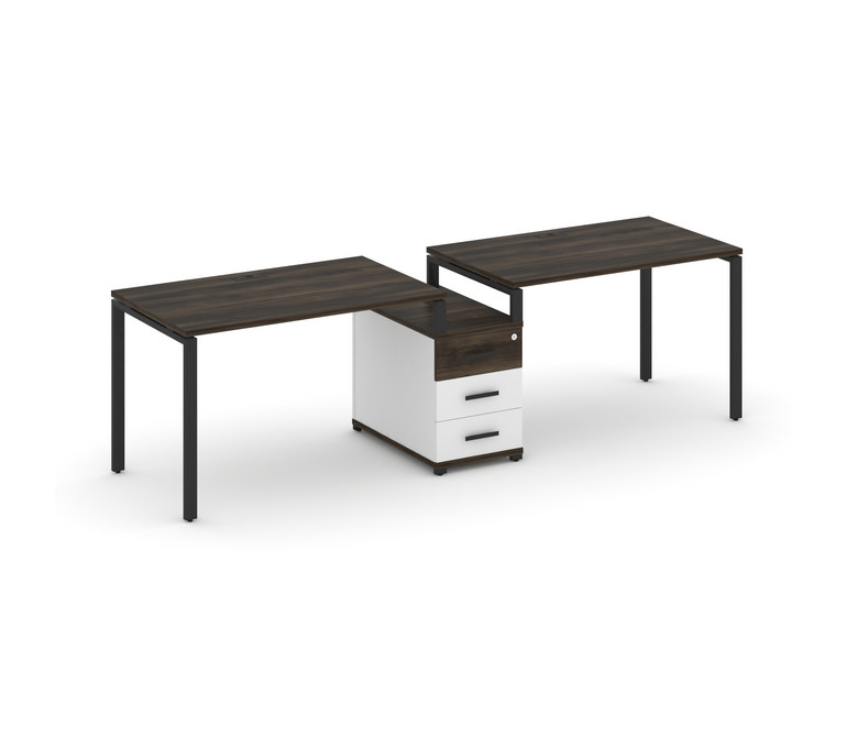 Concept Рабочая станция 2 места с 1 опорной тумбой CN.ORS-302 B Дуб Мали/Белый Бриллиант/Металл Черн