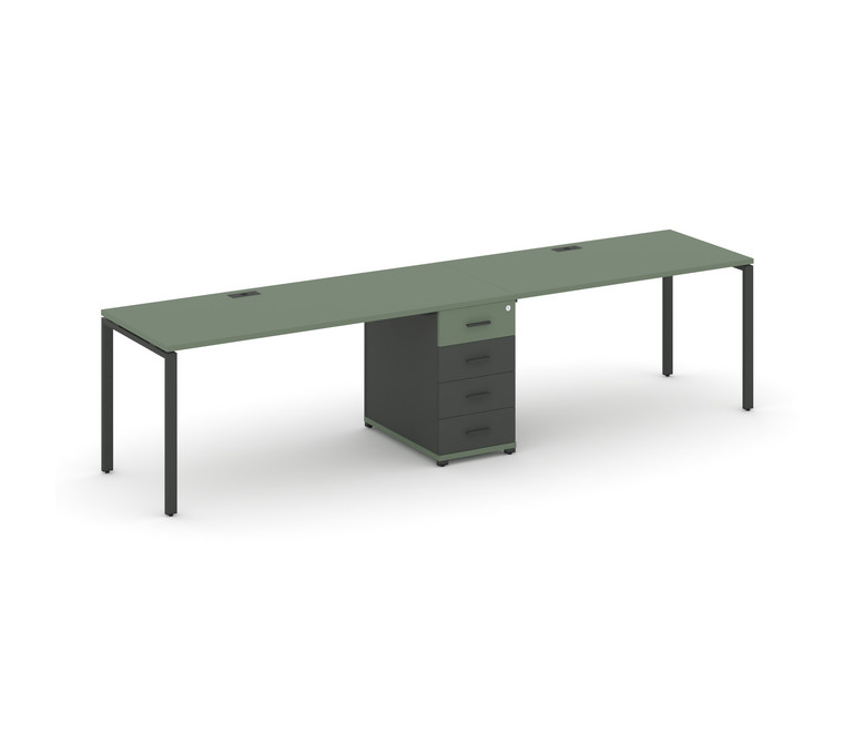Concept Рабочая станция 2 места с 1 опорной тумбой CN.ORS-403 A Кобо/Антрацит/Металл Антрацит 3180*7