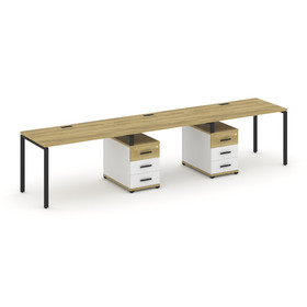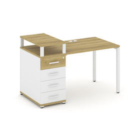Concept Рабочая станция 2 места с 1 опорной тумбой CN.ORS-417 W Дуб Мали/Белый Бриллиант/Металл Белы