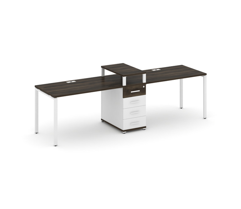 Concept Рабочая станция 2 места с 1 опорной тумбой CN.ORS-418 W Дуб Мали/Белый Бриллиант/Металл Белы