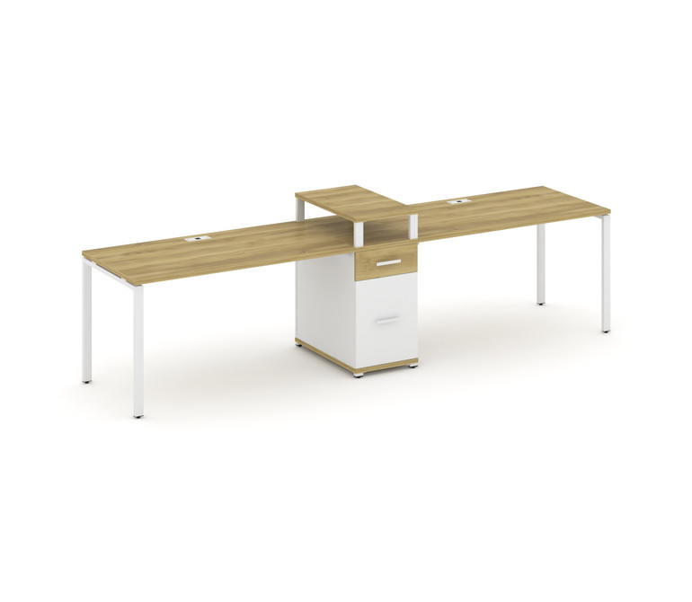 Concept Рабочая станция 2 места с 1 опорной тумбой CN.ORS-423 W Дуб Винченцо/Белый Бриллиант/Металл