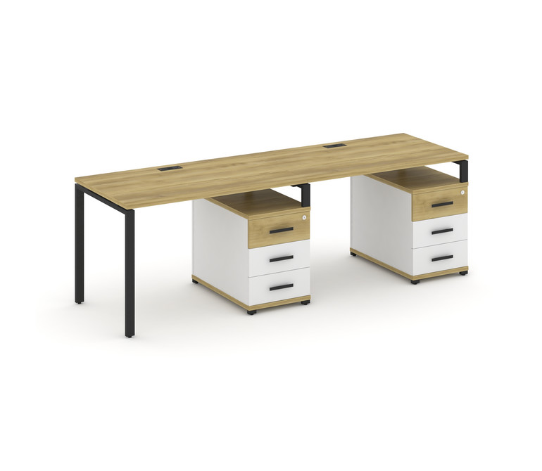 Concept Рабочая станция 2 места с 2 опорными тумбами CN.ORS-310 B Дуб Винченцо/Белый Бриллиант/Метал