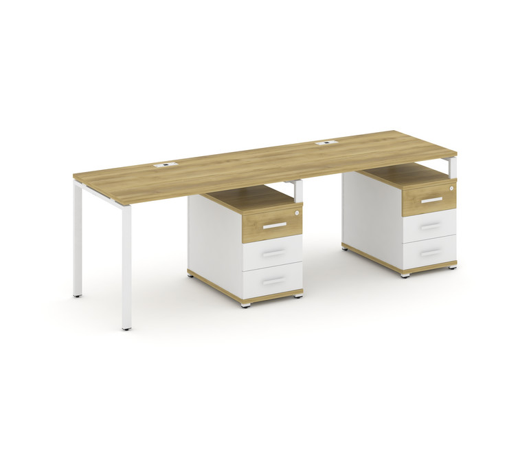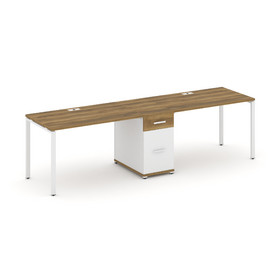 Concept Рабочая станция 2 места с 2 опорными тумбами CN.ORS-310 W Дуб Винченцо/Белый Бриллиант/Метал