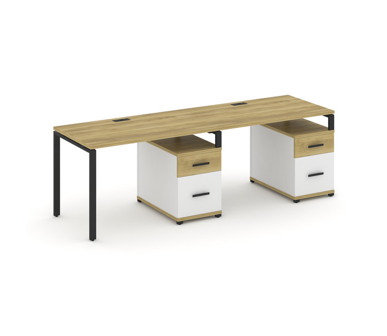Concept Рабочая станция 2 места с 2 опорными тумбами CN.ORS-314 B Дуб Винченцо/Белый Бриллиант/Метал