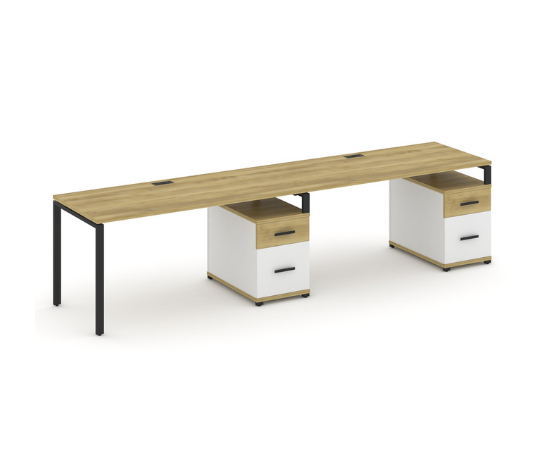 Concept Рабочая станция 2 места с 2 опорными тумбами CN.ORS-316 B Дуб Винченцо/Белый Бриллиант/Метал