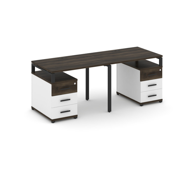 Concept Рабочая станция 2 места с 2 опорными тумбами CN.ORS-317 B Дуб Мали/Белый Бриллиант/Металл Че