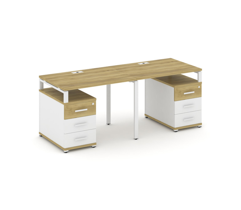 Concept Рабочая станция 2 места с 2 опорными тумбами CN.ORS-317 W Дуб Винченцо/Белый Бриллиант/Метал