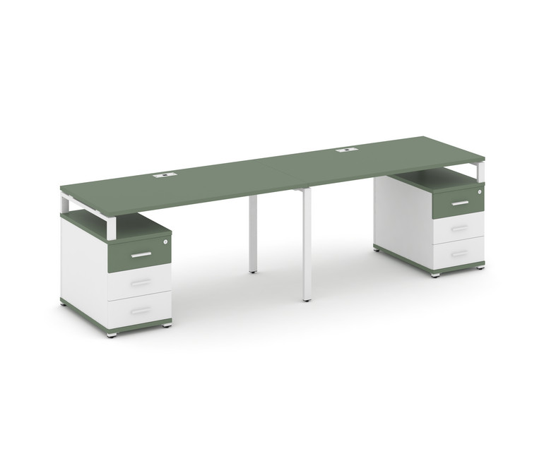 Concept Рабочая станция 2 места с 2 опорными тумбами CN.ORS-318 W Кобо/Белый Бриллиант/Металл Белый