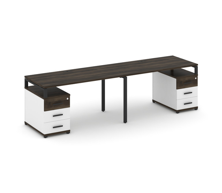 Concept Рабочая станция 2 места с 2 опорными тумбами CN.ORS-319 B Дуб Мали/Белый Бриллиант/Металл Че