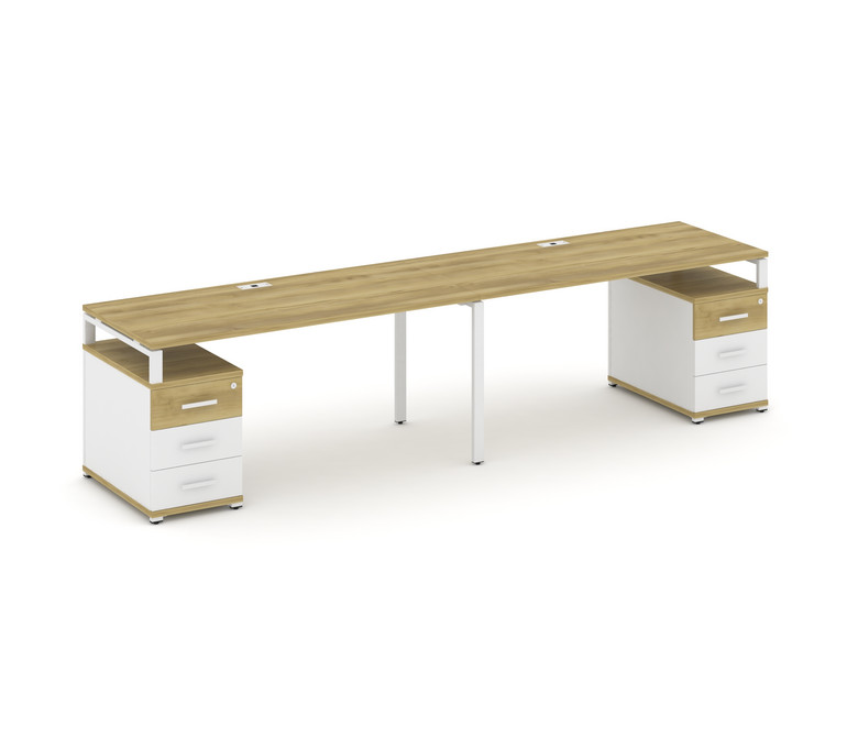 Concept Рабочая станция 2 места с 2 опорными тумбами CN.ORS-320 W Дуб Винченцо/Белый Бриллиант/Метал