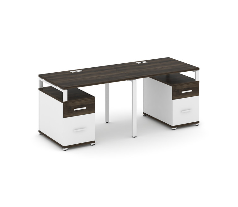 Concept Рабочая станция 2 места с 2 опорными тумбами CN.ORS-321 W Дуб Мали/Белый Бриллиант/Металл Бе