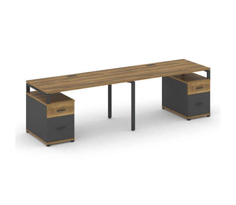 Concept Рабочая станция 2 места с 2 опорными тумбами CN.ORS-322 A Сандал Янтарный/Антрацит/Металл Ан