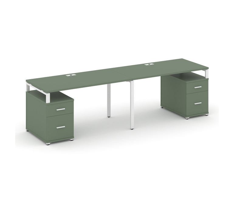 Concept Рабочая станция 2 места с 2 опорными тумбами CN.ORS-322 W Кобо/Металл Белый 2360/3092*720*75