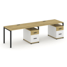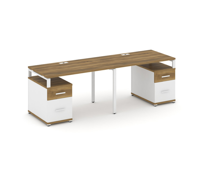 Concept Рабочая станция 2 места с 2 опорными тумбами CN.ORS-322 W Сандал Янтарный/Белый Бриллиант/Ме