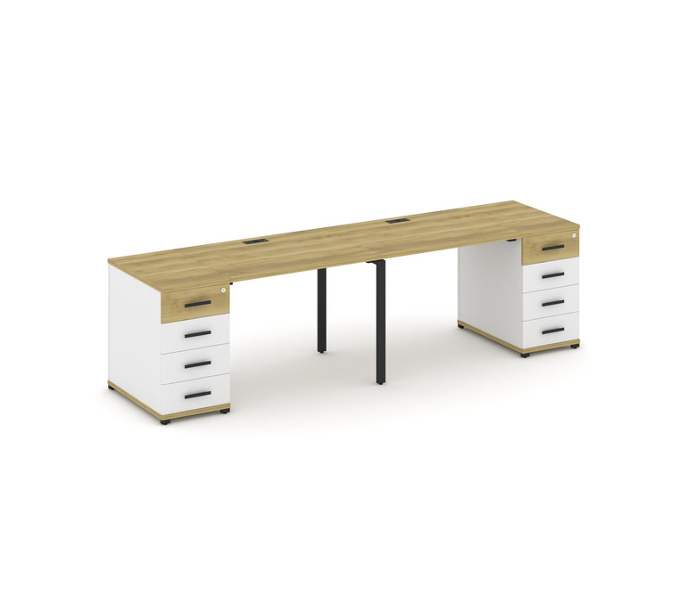 Concept Рабочая станция 2 места с 2 опорными тумбами CN.ORS-409 B Дуб Винченцо/Белый Бриллиант/Метал