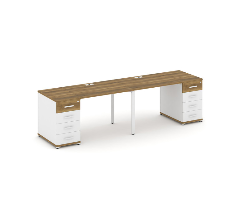 Concept Рабочая станция 2 места с 2 опорными тумбами CN.ORS-409 W Сандал Янтарный/Белый Бриллиант/Ме