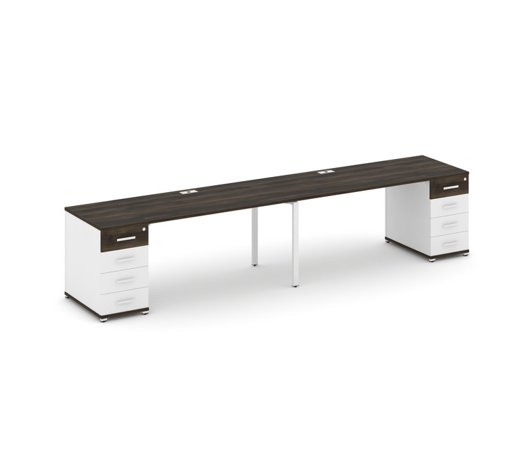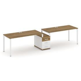 Concept Рабочая станция 2 места с 2 опорными тумбами CN.ORS-411 W Дуб Мали/Белый Бриллиант/Металл Бе