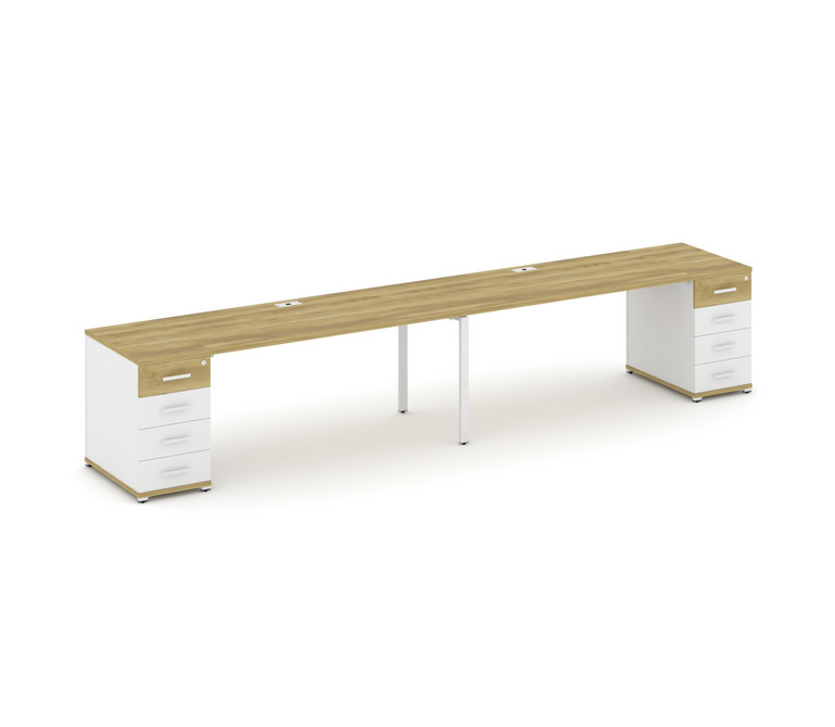 Concept Рабочая станция 2 места с 2 опорными тумбами CN.ORS-412 W Дуб Винченцо/Белый Бриллиант/Метал