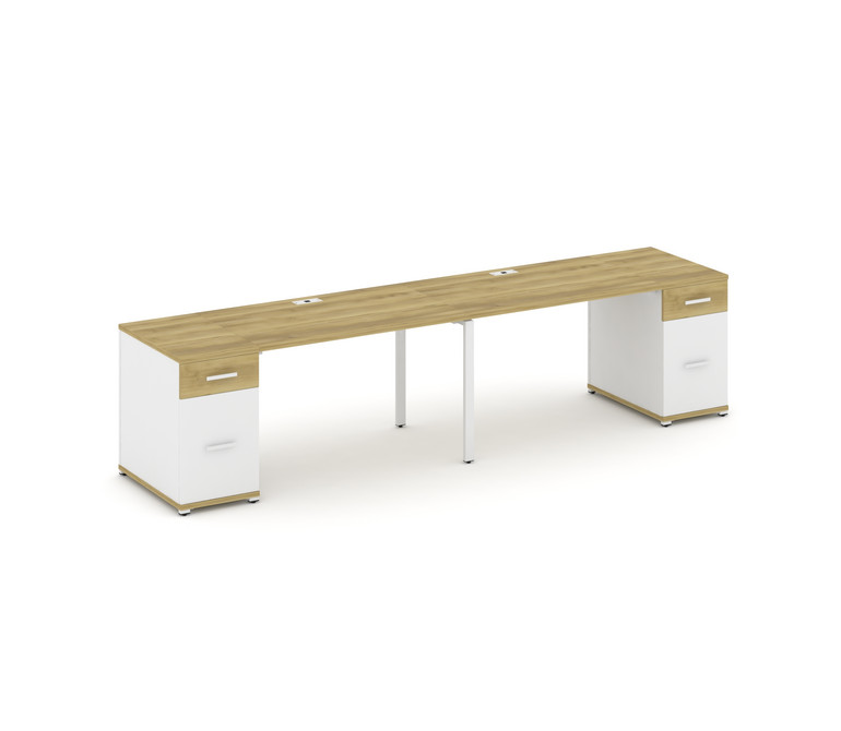 Concept Рабочая станция 2 места с 2 опорными тумбами CN.ORS-414 W Дуб Винченцо/Белый Бриллиант/Метал