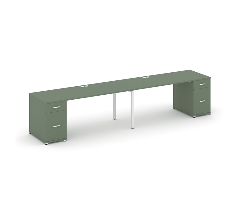 Concept Рабочая станция 2 места с 2 опорными тумбами CN.ORS-414 W Кобо/Металл Белый 3200*720*750
