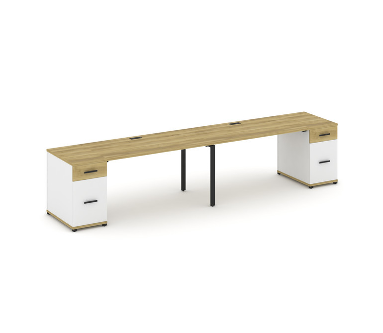 Concept Рабочая станция 2 места с 2 опорными тумбами CN.ORS-415 B Дуб Винченцо/Белый Бриллиант/Метал