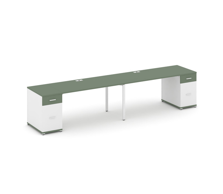 Concept Рабочая станция 2 места с 2 опорными тумбами CN.ORS-415 W Кобо/Белый Бриллиант/Металл Белый