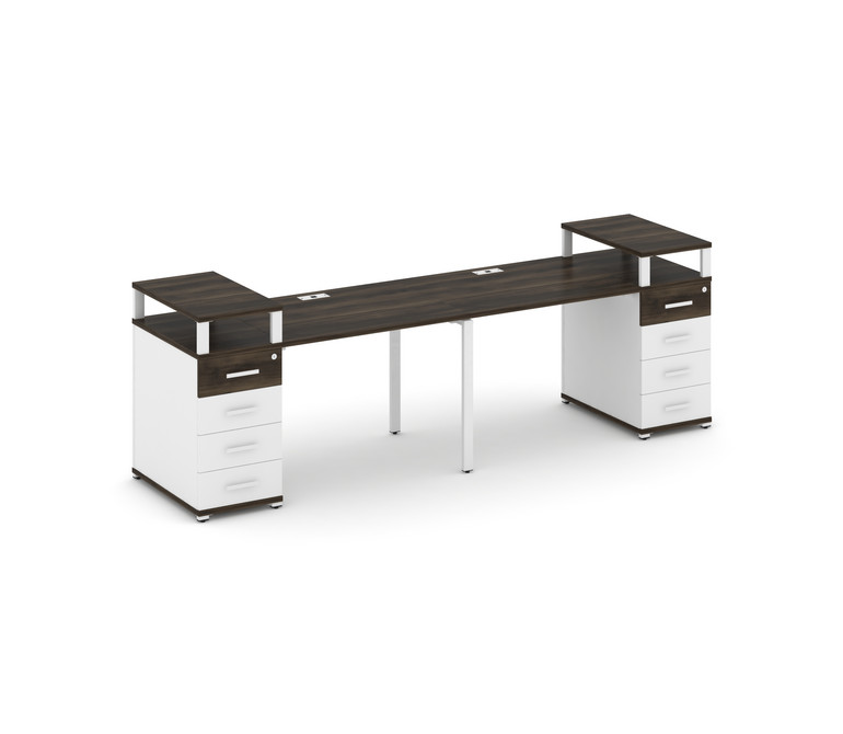 Concept Рабочая станция 2 места с 2 опорными тумбами CN.ORS-425 W Дуб Мали/Белый Бриллиант/Металл Бе