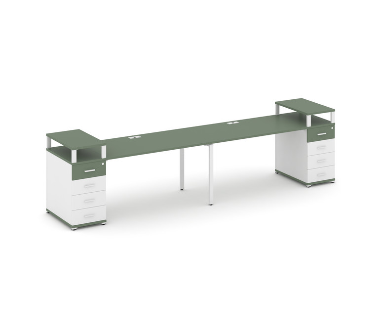 Concept Рабочая станция 2 места с 2 опорными тумбами CN.ORS-427 W Кобо/Белый Бриллиант/Металл Белый