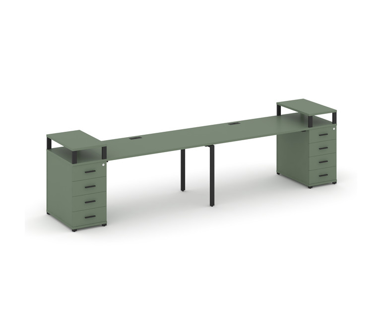 Concept Рабочая станция 2 места с 2 опорными тумбами CN.ORS-428 B Кобо/Металл Черный 4000*720*917