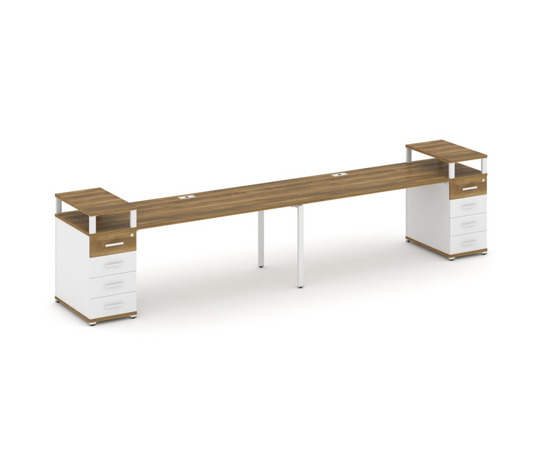 Concept Рабочая станция 2 места с 2 опорными тумбами CN.ORS-428 W Сандал Янтарный/Белый Бриллиант/Ме
