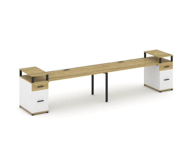 Concept Рабочая станция 2 места с 2 опорными тумбами CN.ORS-432 B Дуб Винченцо/Белый Бриллиант/Метал