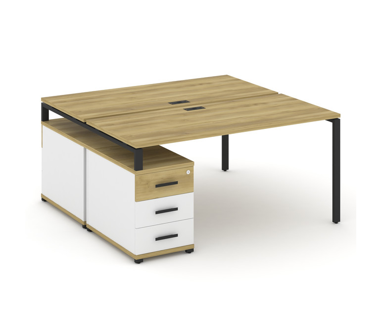 Concept Рабочая станция 2 места с двухсторонней опорной тумбой CN.DRS-304 B Дуб Винченцо/Белый Брилл