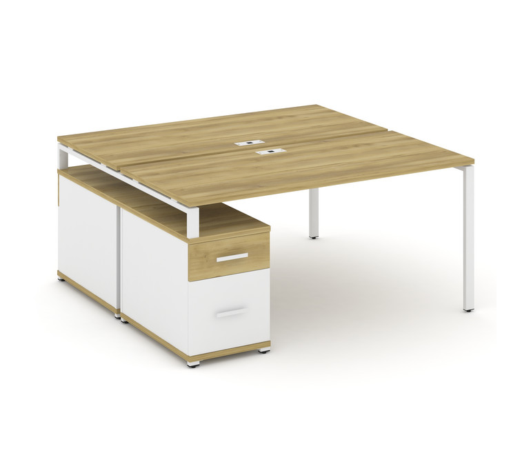 Concept Рабочая станция 2 места с двухсторонней опорной тумбой CN.DRS-308 W Дуб Винченцо/Белый Брилл