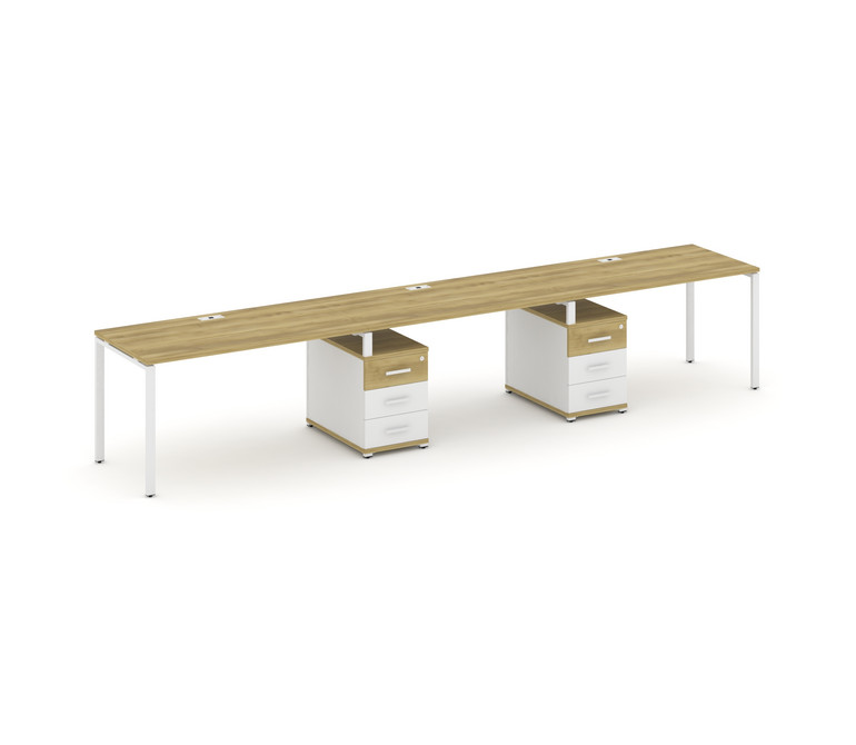 Concept Рабочая станция 3 места с 2 опорными тумбами CN.ORS-335 W Дуб Винченцо/Белый Бриллиант/Метал