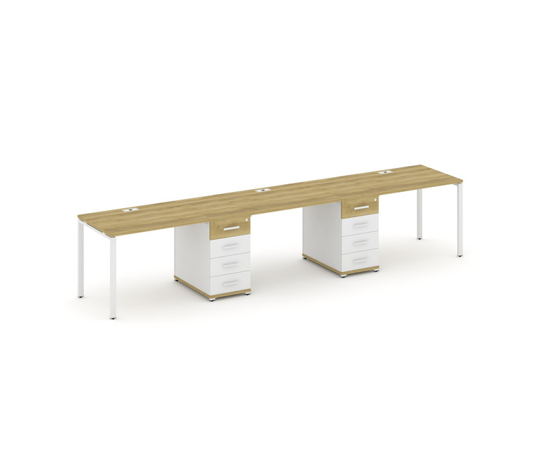 Concept Рабочая станция 3 места с 2 опорными тумбами CN.ORS-433 W Дуб Винченцо/Белый Бриллиант/Метал