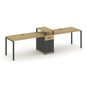 Concept Рабочая станция 3 места с 2 опорными тумбами CN.ORS-436 B Сандал Янтарный/Белый Бриллиант/Ме