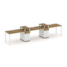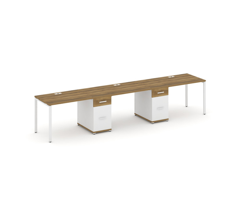 Concept Рабочая станция 3 места с 2 опорными тумбами CN.ORS-437 W Сандал Янтарный/Белый Бриллиант/Ме