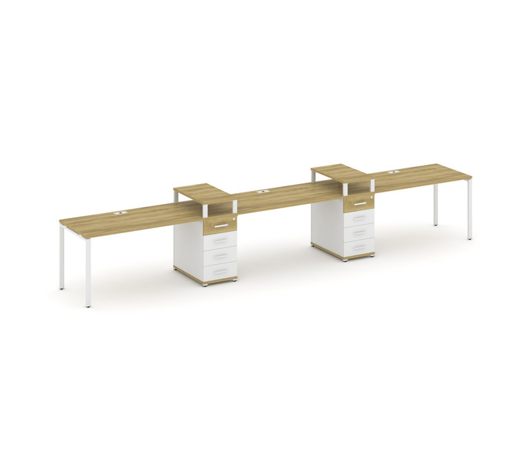 Concept Рабочая станция 3 места с 2 опорными тумбами CN.ORS-451 W Дуб Винченцо/Белый Бриллиант/Метал