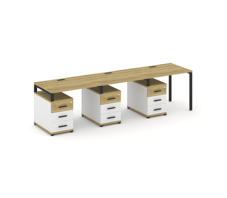 Concept Рабочая станция 3 места с 3 опорными тумбами CN.ORS-341 B Дуб Винченцо/Белый Бриллиант/Метал