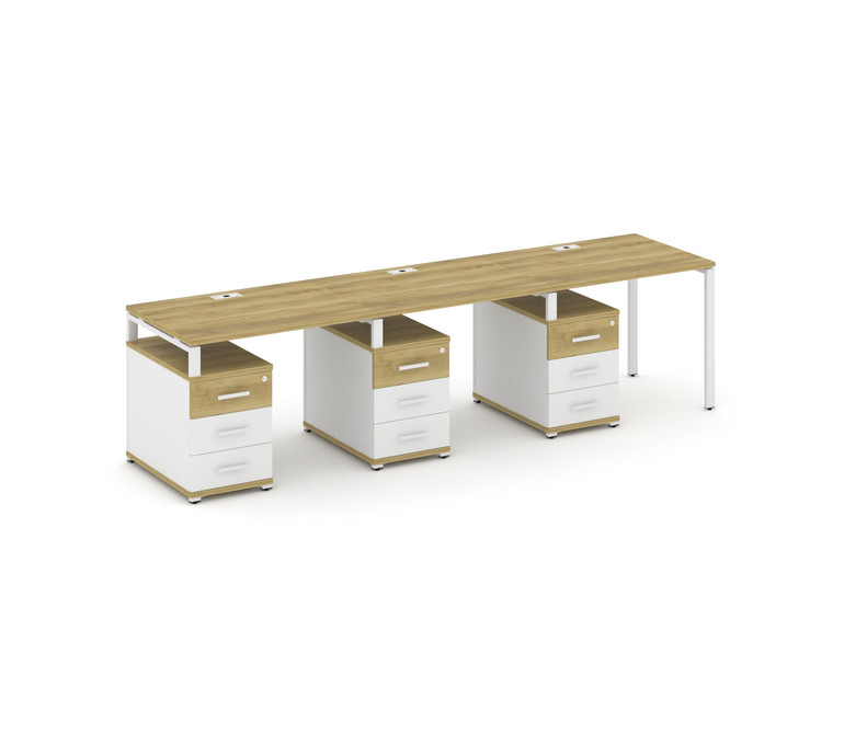 Concept Рабочая станция 3 места с 3 опорными тумбами CN.ORS-341 W Дуб Винченцо/Белый Бриллиант/Метал