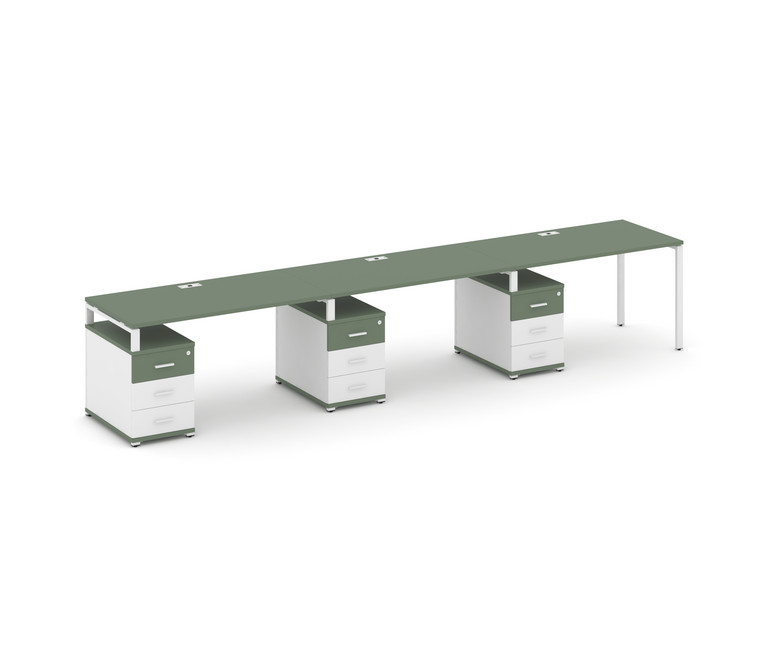 Concept Рабочая станция 3 места с 3 опорными тумбами CN.ORS-342 W Кобо/Белый Бриллиант/Металл Белый