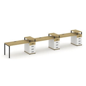 Concept Рабочая станция 3 места с 3 опорными тумбами CN.ORS-348 B Сандал Янтарный/Белый Бриллиант/Ме
