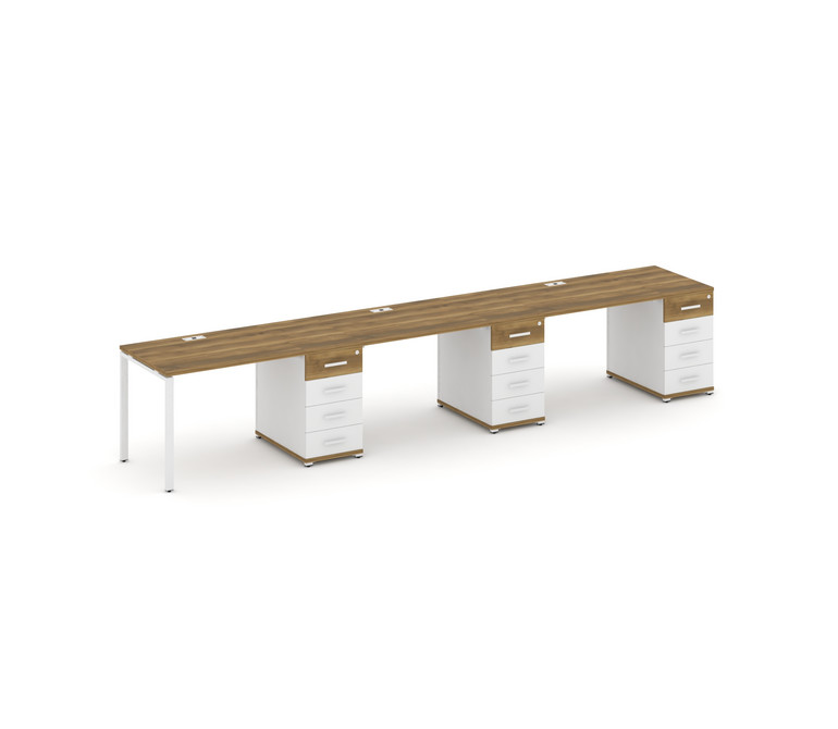 Concept Рабочая станция 3 места с 3 опорными тумбами CN.ORS-441 W Сандал Янтарный/Белый Бриллиант/Ме