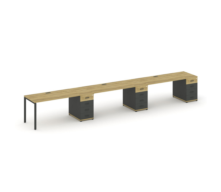 Concept Рабочая станция 3 места с 3 опорными тумбами CN.ORS-443 A Дуб Винченцо/Антрацит/Металл Антра
