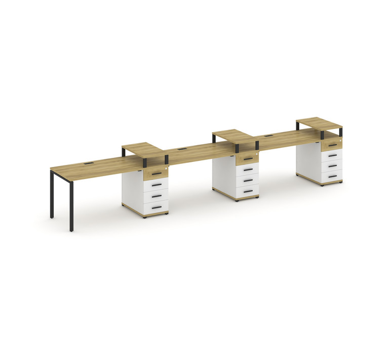 Concept Рабочая станция 3 места с 3 опорными тумбами CN.ORS-458 B Дуб Винченцо/Белый Бриллиант/Метал