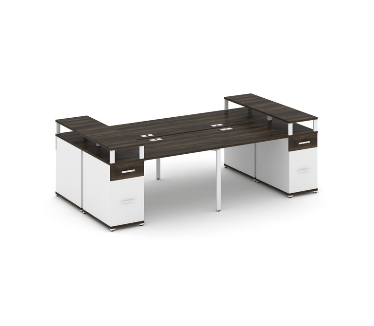 Concept Рабочая станция 4 места 2 опорными тумбами CN.DRS-445 W Дуб Мали/Белый Бриллиант/Металл Белы