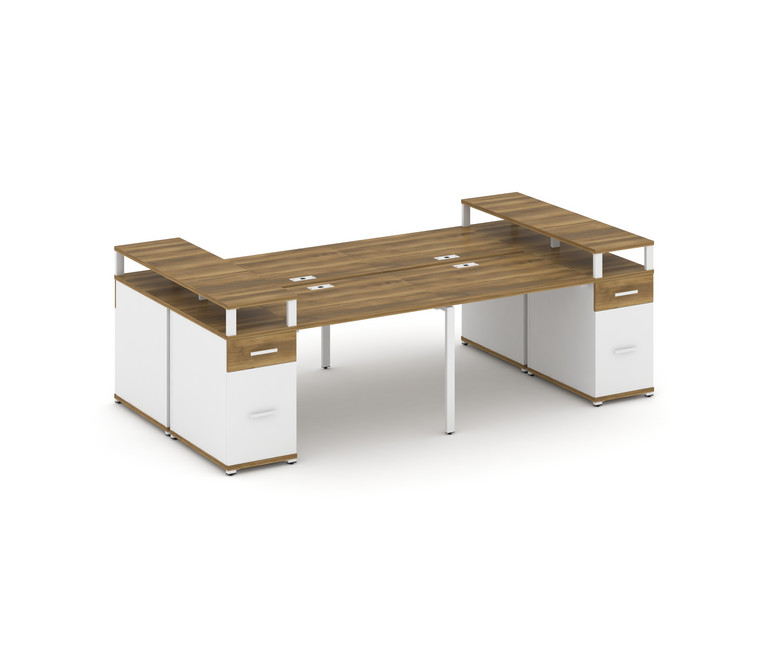 Concept Рабочая станция 4 места 2 опорными тумбами CN.DRS-445 W Сандал Янтарный/Белый Бриллиант/Мета