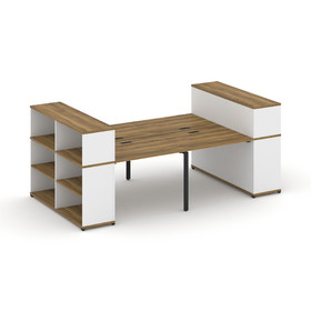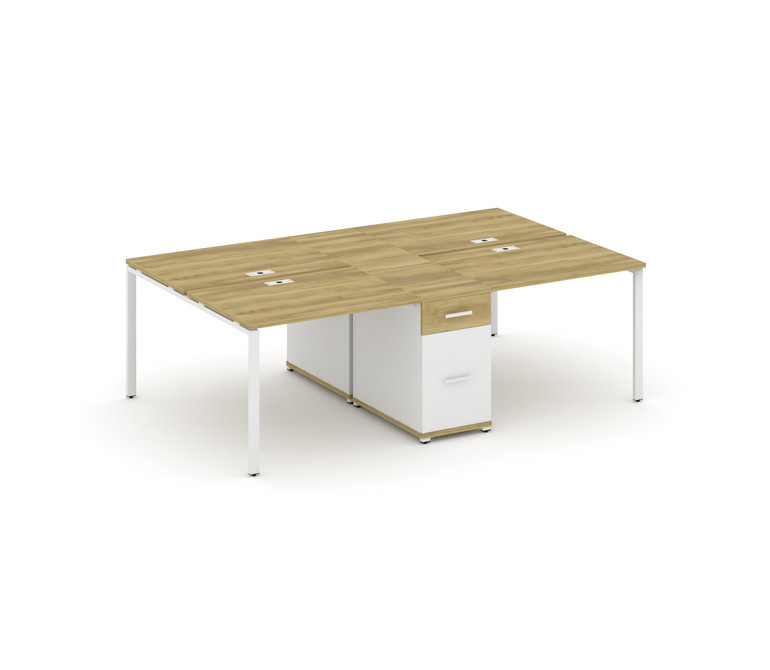 Concept Рабочая станция 4 места с 1 опорной тумбой CN.DRS-421 W Дуб Винченцо/Белый Бриллиант/Металл