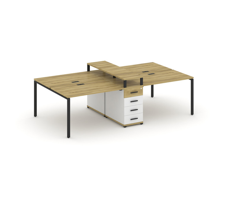 Concept Рабочая станция 4 места с 1 опорной тумбой CN.DRS-434 B Дуб Винченцо/Белый Бриллиант/Металл